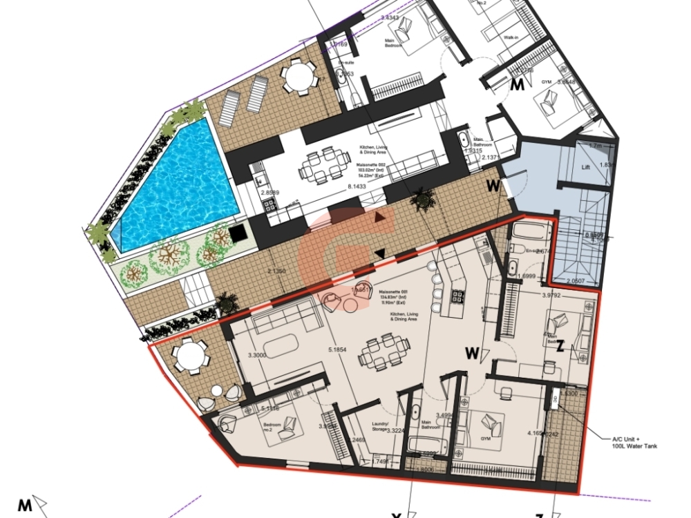 This spacious unit features a bright open-plan kitchen, living, and dining area, leading onto a private outdoor space ideal for relaxing or entertaining. The layout includes 2 bedrooms, with a main bedroom featuring en-suite facilities, a main bathroom, and an additional gym/multipurpose room, making it ideal for modern lifestyles.