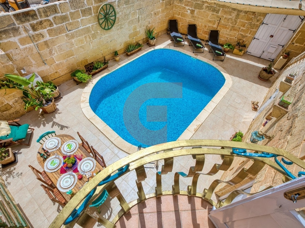 Well-located in the very outskirts of this quaint village in Gozo, a well-kept, 300-year-old farmhouse. The property consists of a large mill room converted into a combined kitchen/dining/living area with a working fireplace, four bedrooms (three with en-suite facilities), a main bathroom, a private pool, and a delightful deck area. Ideally, as a family holiday home or as a home retreat...