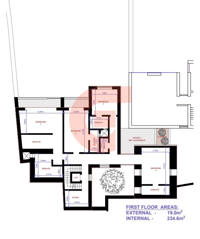 The property layout includes a spacious open-plan kitchen, dining, and living area, four bedrooms all featuring en-suite bathrooms, a main bathroom at ground floor level, a washroom, and multiple storage rooms, ensuring both comfort and practicality.